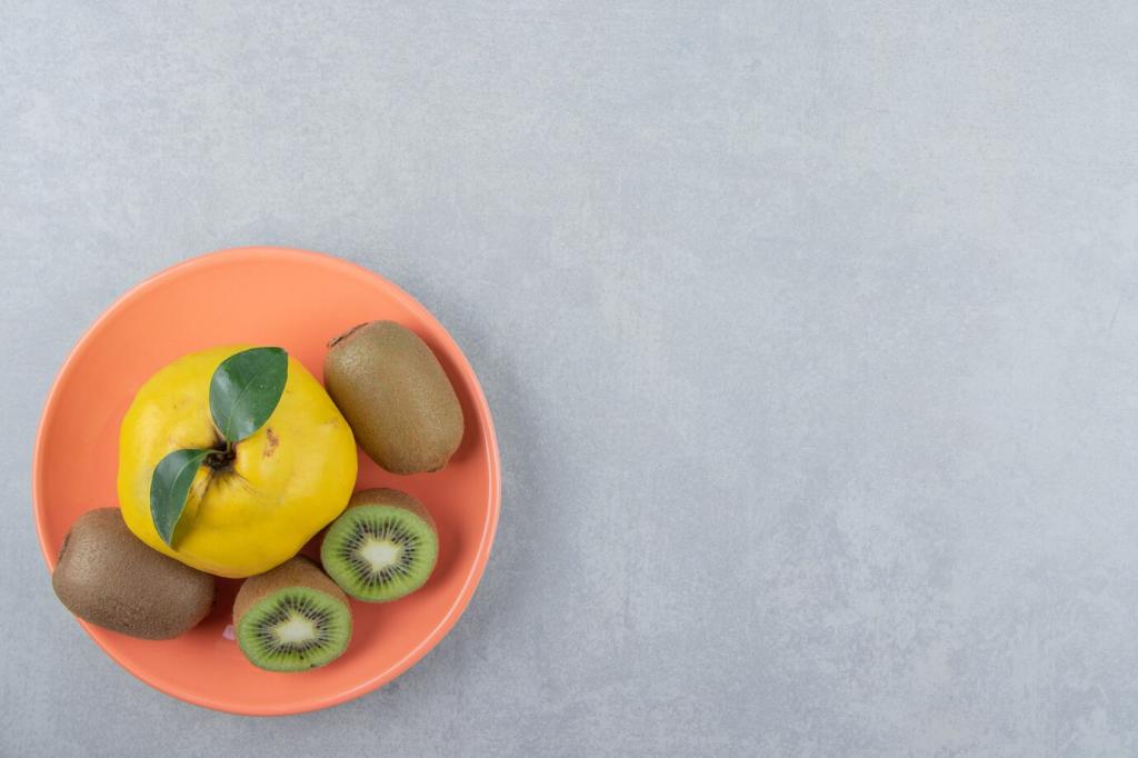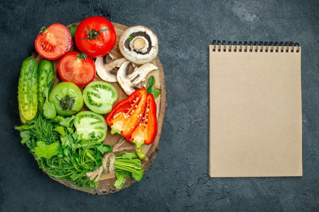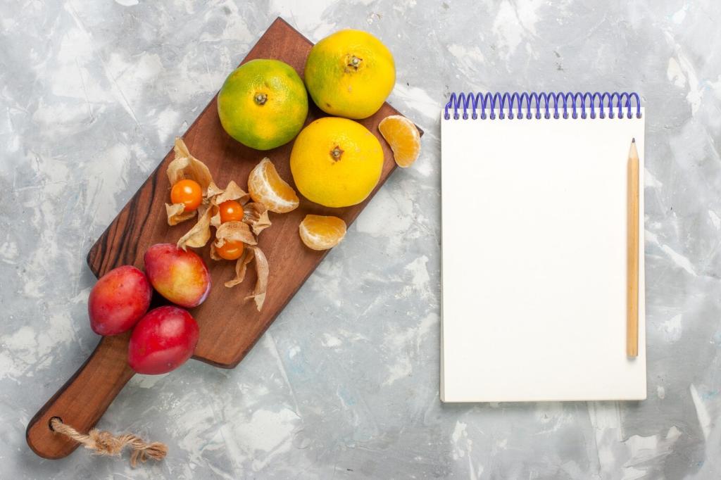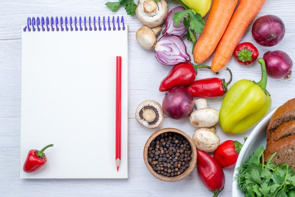 Nutze die Hand als Maß: eine Handfläche Protein, eine Faust komplexe Kohlenhydrate, zwei Hände Gemüse, ein Daumen gutes Fett. Diese einfache Formel sorgt für Sättigung, stabile Energie und weniger Grübeln. Schreib uns, wie du sie an deinen Alltag anpasst!
